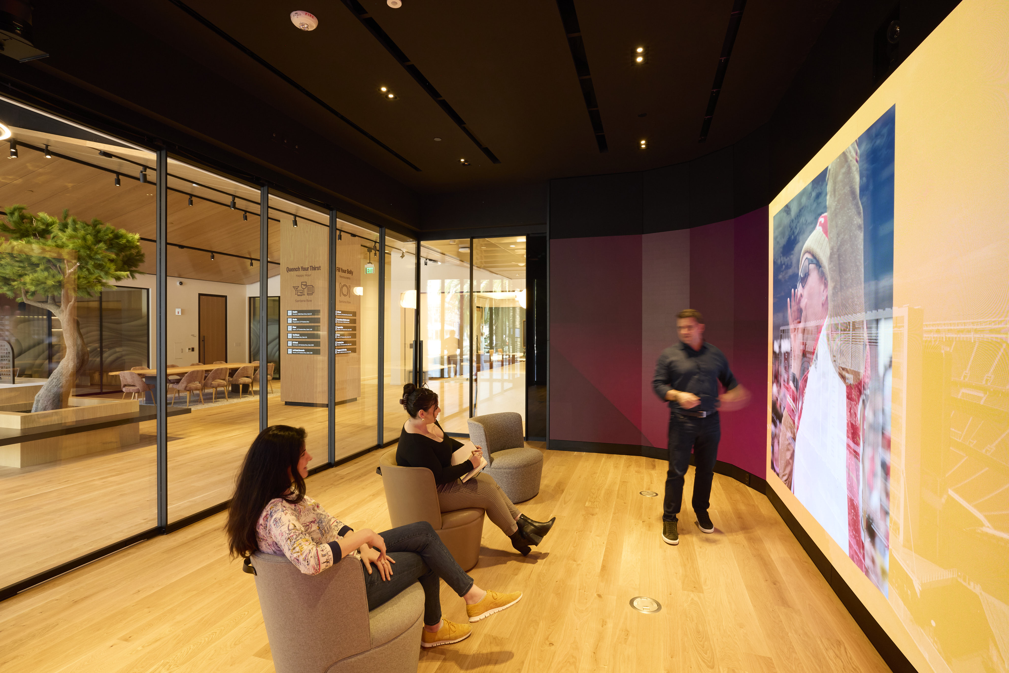In partnership with NetApp, Downstream, now a part of Elevate creative led a comprehensive scope spanning experience strategy, environmental design, AV engineering, content design, and digital platform development to create a cohesive and immersive customer journey. The experience begins at the façade with The Beacon, a 65-foot generative digital installation that captures attention and communicates NetApp’s innovation through dynamic, data-inspired visuals. Inside, a series of integrated touchpoints including a customizable Welcome Wall, an interactive Art Gallery, an immersive Theater, and a digitally enabled LED Column work in concert to deliver tailored, content-rich engagements that adapt to audience needs while reinforcing a consistent narrative designed to support NetApp's core services and spark conversation.