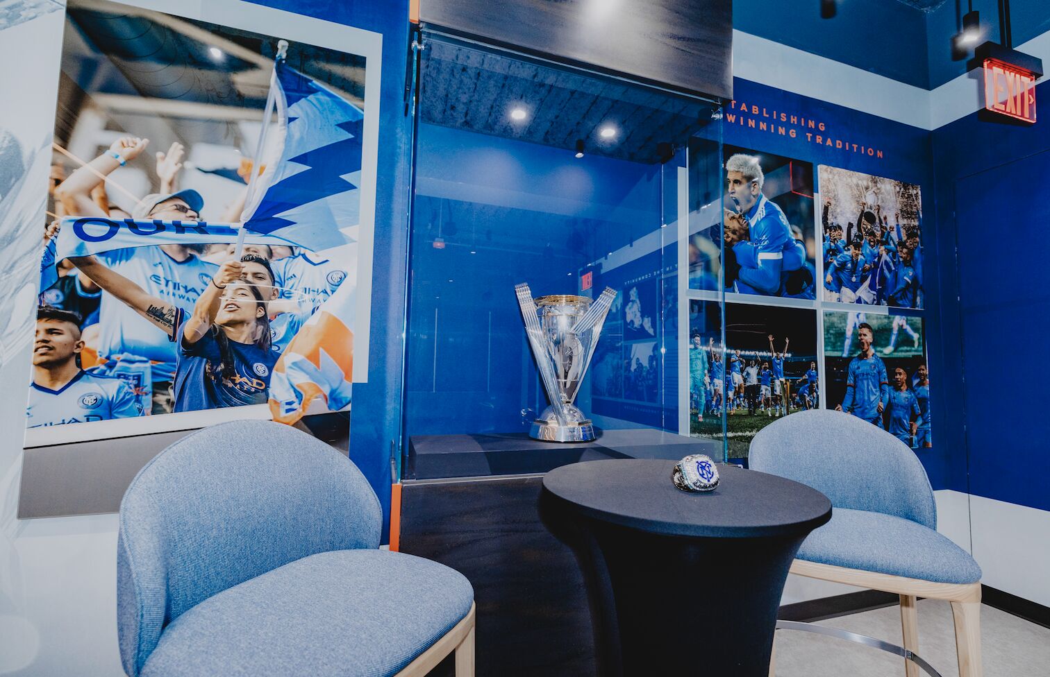 Elevate led the design and delivery of the New York City FC Preview Center, which embodies the club's vision of an immersive space that enhances fan connection among supporters and newcomers alike. Thoughtfully designed in collaboration with HOK, the center seamlessly aligns with venue signage to create a cohesive, engaging narrative that merges design and function.
